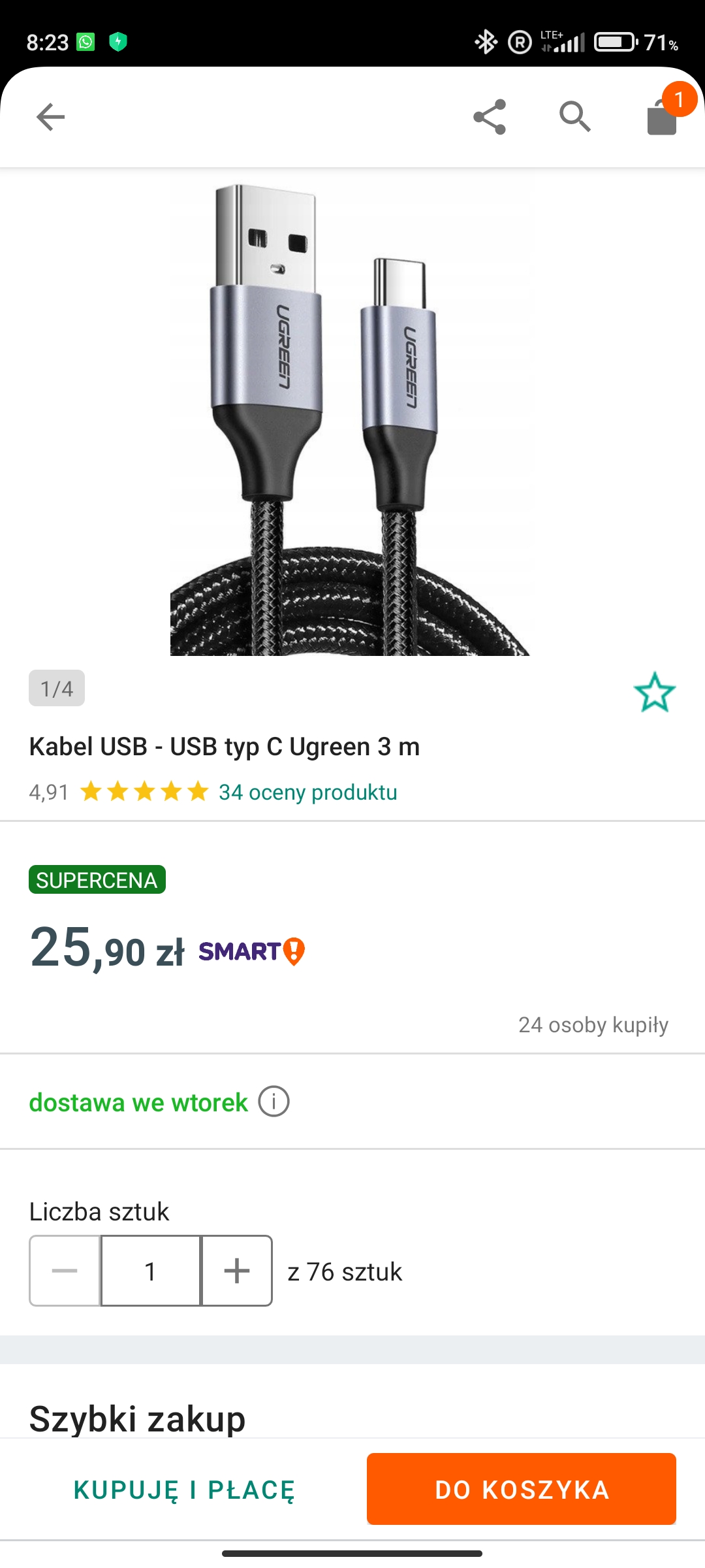 Ну и внезапно. Тот же кабель на месте, в Польше, у нормального продавца:)