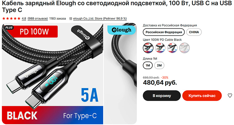 Кабели длиной 1 и 2 метра, поддерживающие зарядку до 100 ватт (подходят для питания ноутбуков), имеющие дисплей, на котором демонстрируется мощность зарядки. Есть как с двумя головками Type-C, так и USB-A - USB-C. Заказал себе, прикольно.