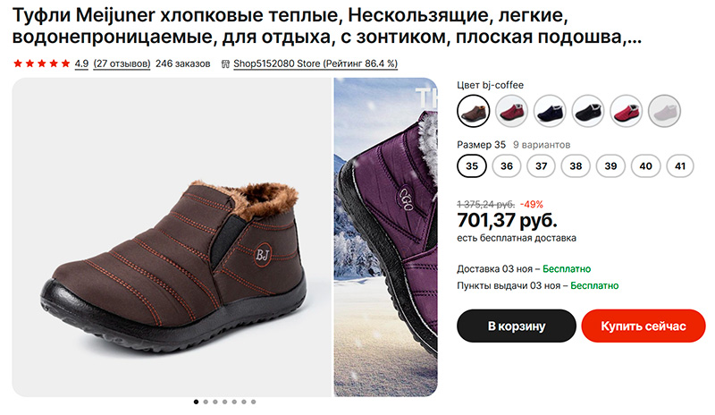 про ботинки стоило бы добавить, что они заявлены как женские и максимальный размер 43 со стелькой 26,5 см 😄а, и это вообще магазин только женской обуви