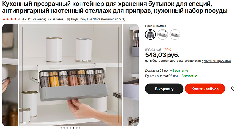 Подвесной пластиковый контейнер для хранения специй. Экономит место, делает работу со специями более удобной. Там же можно докупить 5 баночек для специй.