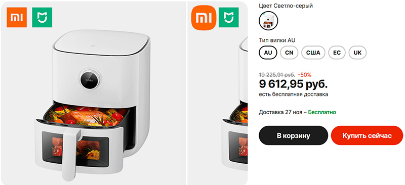 Аэрогриль Xiaomi Mijia на 4 литра. Есть прозрачное окошечко, позволяющее наблюдать за процессом приготовления.