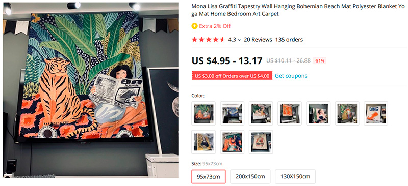 Гобелены трех размеров с картинами известных художников. 10 вариантов изображений.