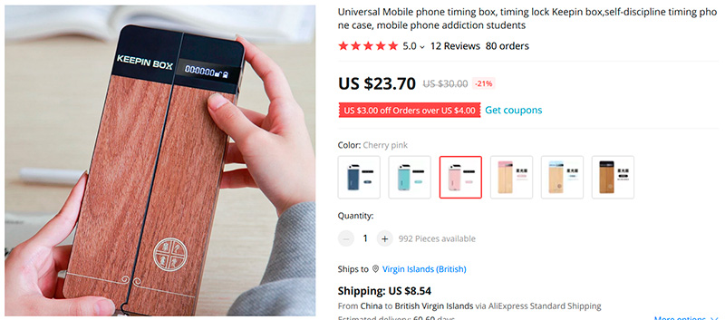 Какая прикольная штука для страдающих телефонной зависимости - сейф для смартфона с таймером. Их там два вида - пластиковый и деревянный, каждый вид имеет три разных цвета. Как работает? Нужно вам сделать какую-то срочную работу или же нужно идти ложиться спать, а вы не можете оторваться от телефона? Кладете телефон в этот сейф (он рассчитан на любые модели, даже самые крупные), выставляете время - все, телефон заблокирован!