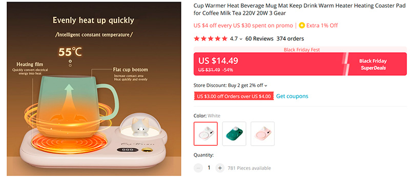 С акцией "US $4 off every US $30" и кодом BFS6 (US $6 off $50) цена за Global Version получилась $54.46 (изначально $68.46)