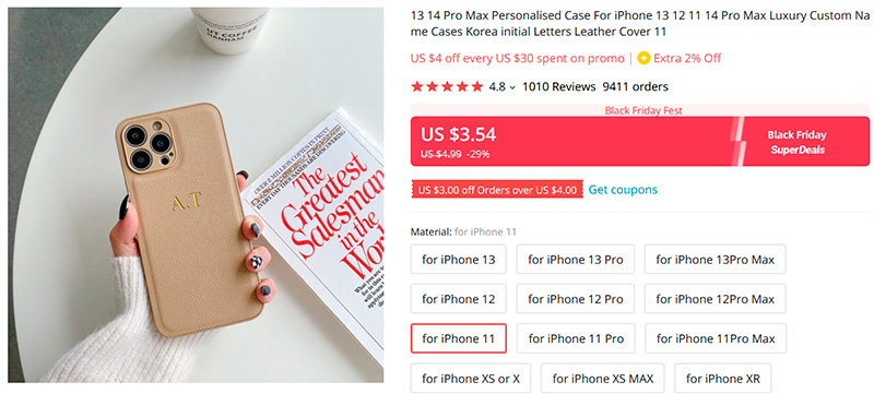 Хорошо выглядящие именные кожаные чехлы для айфонов различных расцветок. При заказе можно написать, какие инициалы указать на чехле.