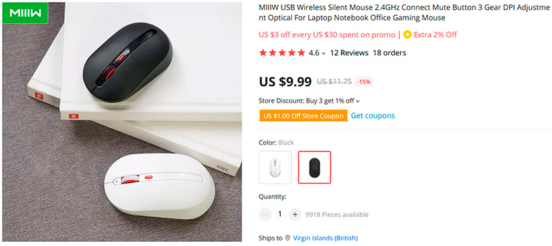 Беспроводная мышь MIIW с разрешением сенсора от 800 до 1600 dpi. Двух цветов, питается от двух батареек AAA. Ключевая особенность - практически бесшумные нажатия кнопок.