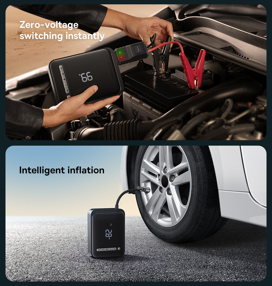 Для тех заводных парней, кто любит качаться, предлагаю уникальный прибор от компании Baseus - автомобильное пусковое устройство и портативный воздушный компрессор. То есть, хочешь качай, хочешь - заводи (можно ещё и телефон заряжать).