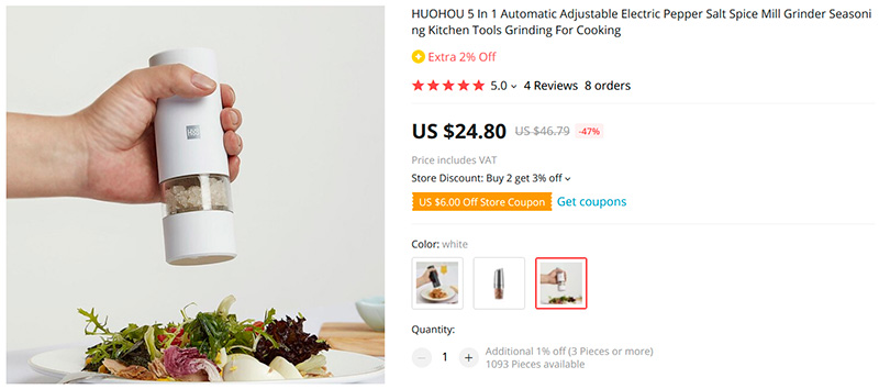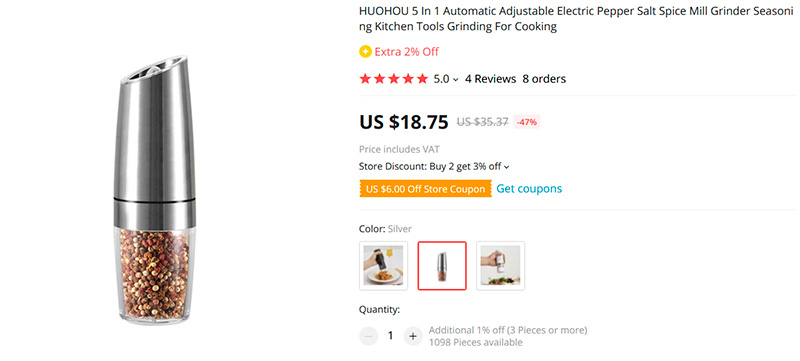 Электрическая мельничка для соли и перца Huohou. Так вот, вот ту, которая на скриншоте - не покупайте, барахло полное! Я сдуру купил, попробовал и выкинул.