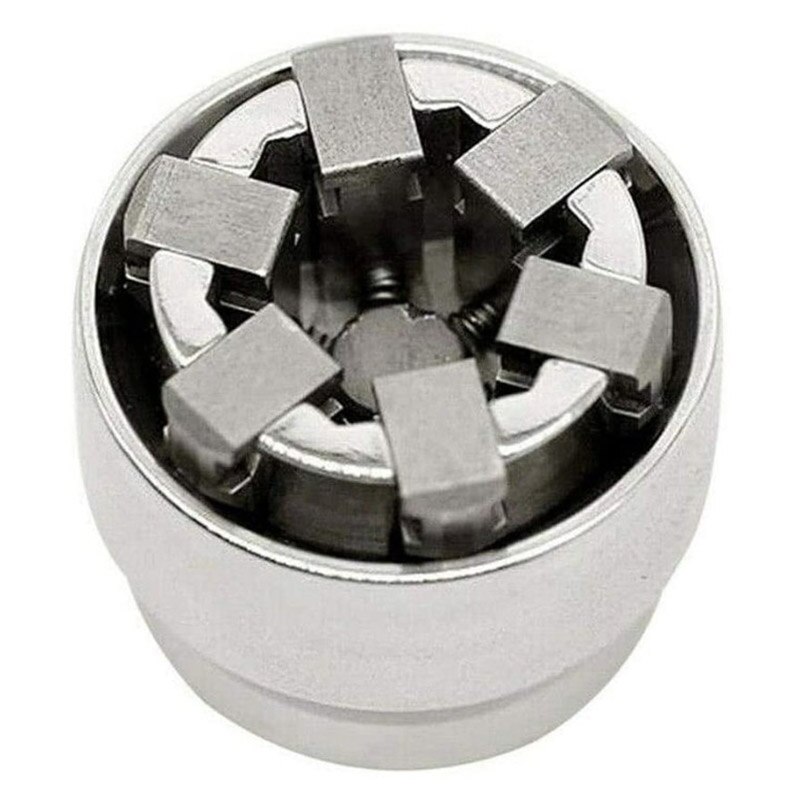 Один такой ключ может заменить сразу 30. Размер регулируется поворотом насадки. Просто подносите его к гайке и зажимаете, он сам сдвинет подвижные части к гайке. Выдерживает большие нагрузки, чем другие регулируемые ключи.