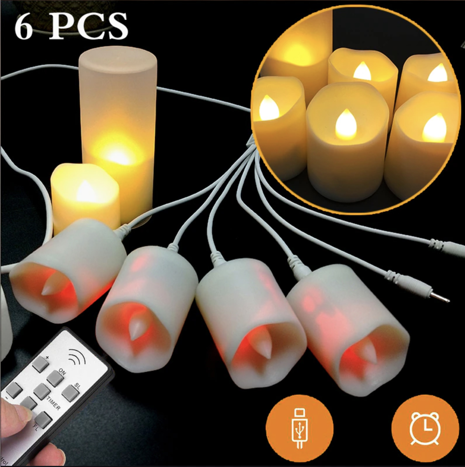 Выглядят отлично, я даже не ожидал. Брали вариант из 6 штук с пультом и USB-кабелем для зарядки. Светят мягким, приятным светом. С пульта регулируется яркость и режимы мерцания (быстрее-медленнее).