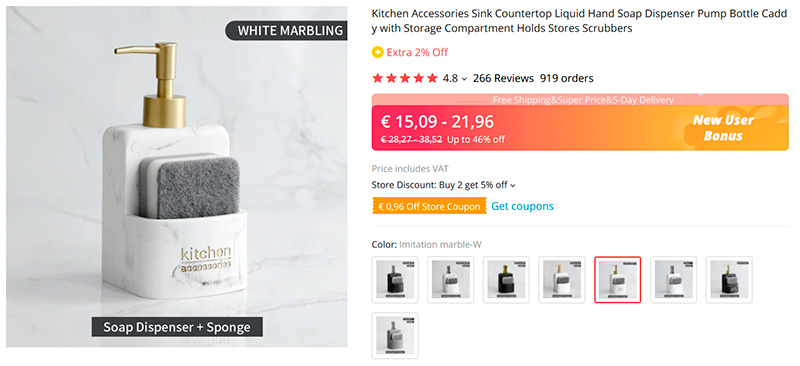 Удобная штука для кухни - дозатор чистящего средства с подставкой для губки, чтобы губка не валялась где попало. Разные цвета, разные варианты оформления, включая под мрамор и под гранит.