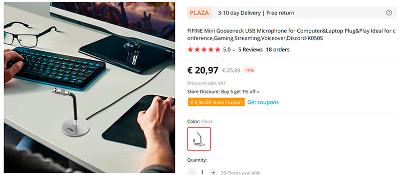 И еще один вариант - сверхкомпактный (я как раз себе такой искал). Тут уже никаких регулировок на микрофоне, но зато устройство почти не занимает место на столе. И ориентируется на гибкой ножке как угодно. Подключается также по USB.