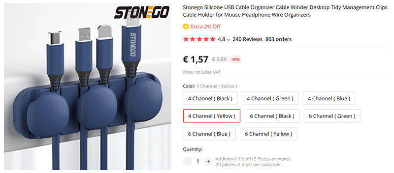 И у этого же производителя есть вот такие торцевые органайзеры четырех цветов: на 4 и 6 каналов. С ними удобно то, что провода не занимают место на столе, а при необходимости просто вытягиваются из держателя. Возьму себе пару таких.
