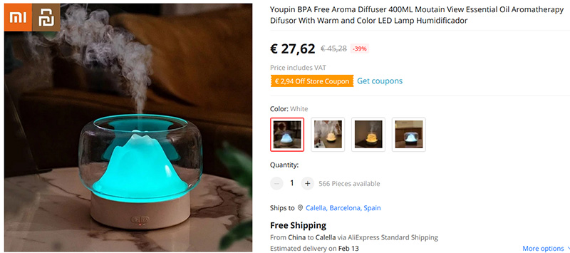 Увлажнитель и ароматизатор воздуха от дочки Xiaomi, который хорошо впишется в дизайн комнаты: две модели - в виде горы и в виде цветка. Емкость для воды - 400 мл. Каждое устройство имеет 7 вариантов подсветки. Основание - белый пластик или дерево.