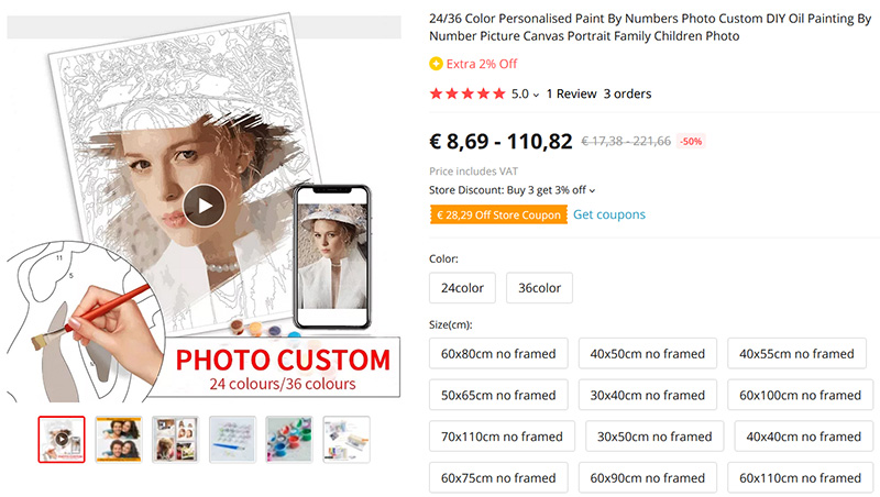 Также если еще интересное предложение - написать свой (или любой другой) портрет по фотографии: фото отправляете им, они специально под вас изготавливают соответствующий шаблон.