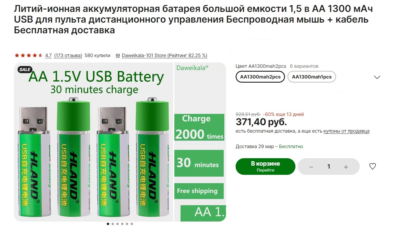 Поискал ещё литий-ионных аккумуляторов подешевле на 1,5V с нормальными отзывами, нашёл и заказал вот такие