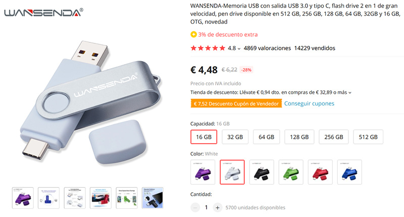 Всегда полезная штука - флешка с объемами от 16 до 512 ГБ, с разъемами Type-C и USB-A. Для компьютеров, ноутбуков, планшетов и смартфонов. Плюс - имеет ушко для подвешивания в качестве брелока на ключах. Шесть вариантов цветов, шесть вариантов емкостей.