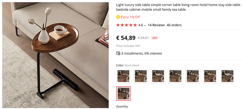 Небольшой и удобный сервировочный столик, который можно использовать в гостиной рядом с креслами или диваном, с кроватью, с рабочим столом и так далее. Несколько вариантов цветов.