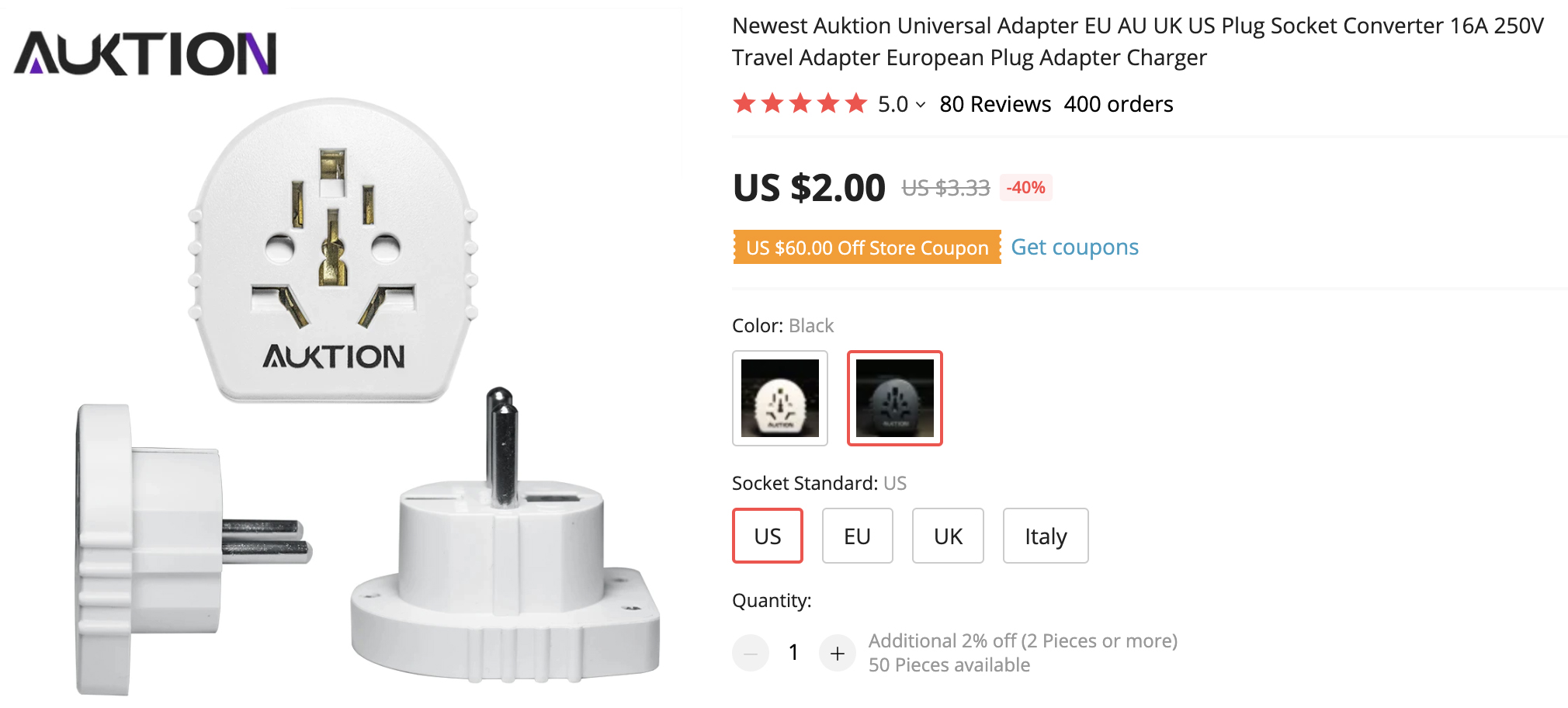 На Али нашел хороший переходник. Там ценно то, что есть варианты под различные розетки- US, EU, UK