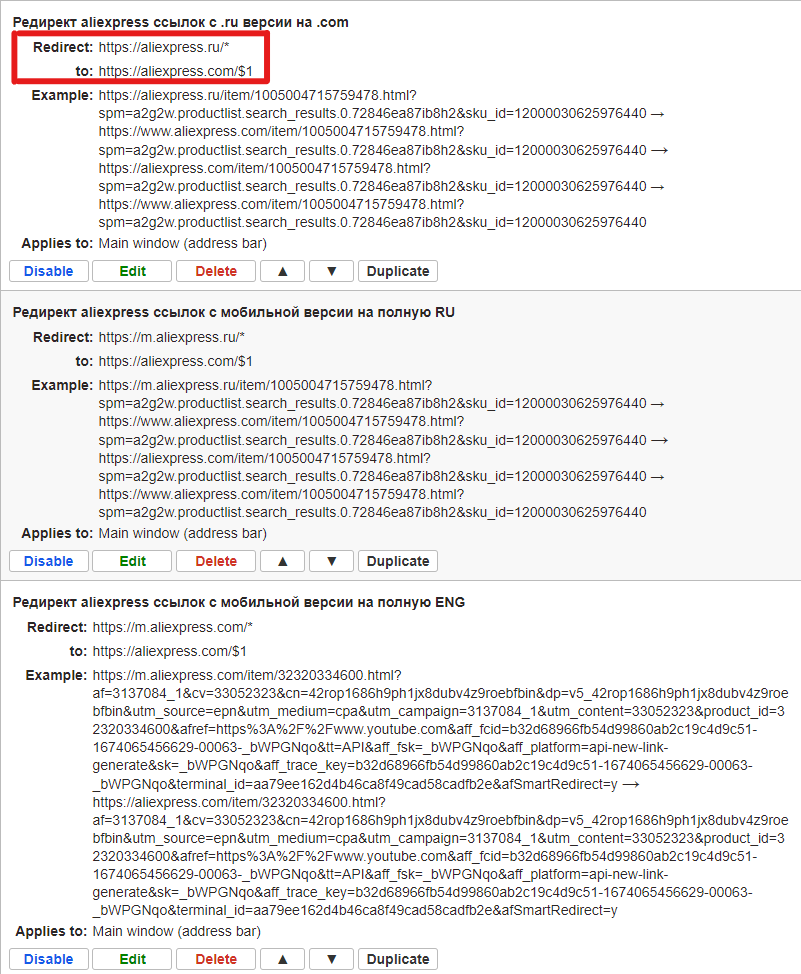 Поставьте расширение для браузера Redirector и настройте редирект ссылок с ru версии на com. Предварительно удалите все куки связанные с aliexpress. Теперь можно спокойно переходить по любым ссылкам в этой теме и не переживать что опять будет перекидывать на ru версию, сбивая куки
