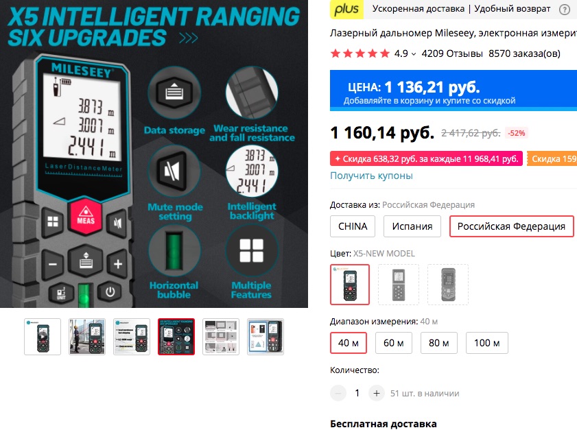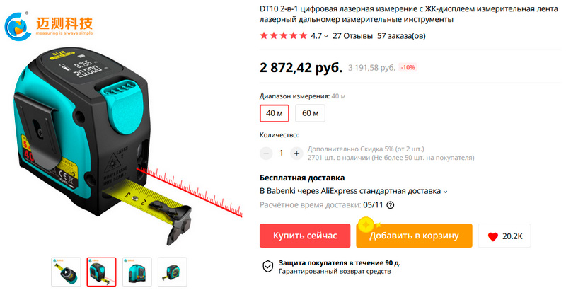 Любопытная какая штука - рулетка с лазерным дальномером до 40 или 60 метров.