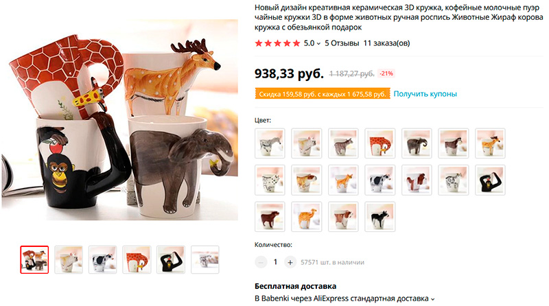 Еще из серии забавностей - кружки с животными 3D. Куча всяких вариантов. И детям такое должно очень нравиться (например, как подарок), да и некоторые взрослые не откажутся. Единственное: если кружка предназначена для горячих напитков, тогда, конечно, нужно брать вариант, где нормальная ручка - это у жирафа и обезьяны. А то ручка в виде мордочки собаки или кошки - такая чашка только для прохладных напитков, от греха. Ну или карандаши с пишущими ручками в нее ставить - тоже вариант!