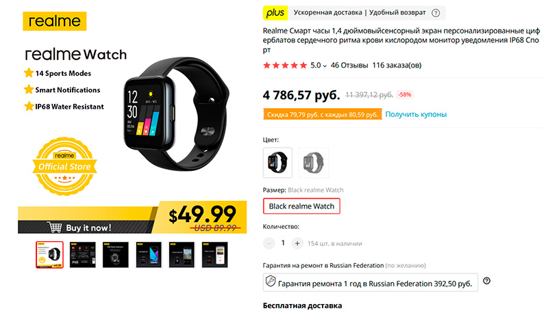 Появились в продаже умные часы Realmi Watch. Недорогие, выглядят хорошо. Надо тестировать, конечно: заказал, будет обзор.