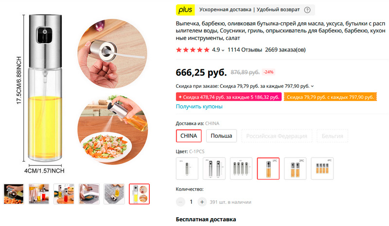 Из Китая можно заказать одно устройство, из России доступен заказ сразу только двух или трех стеклянных (они удобнее стальных, на мой взгляд, да и выглядят лучше).