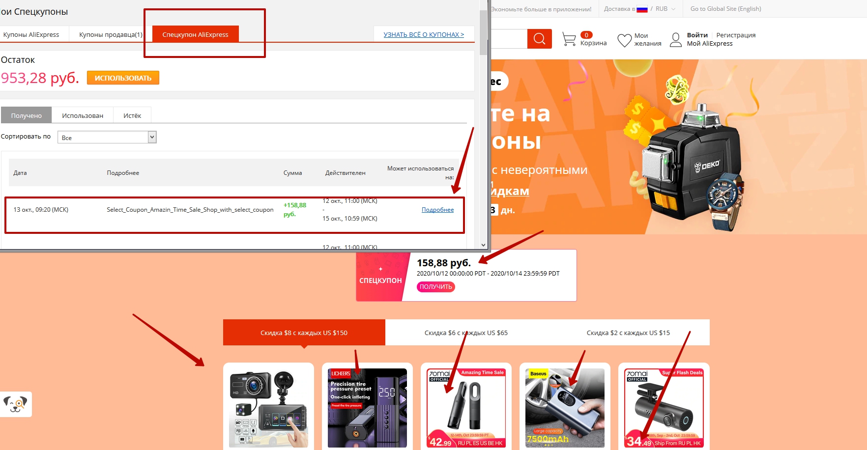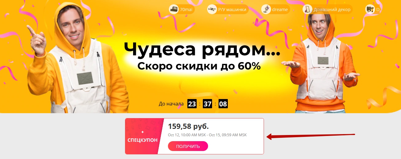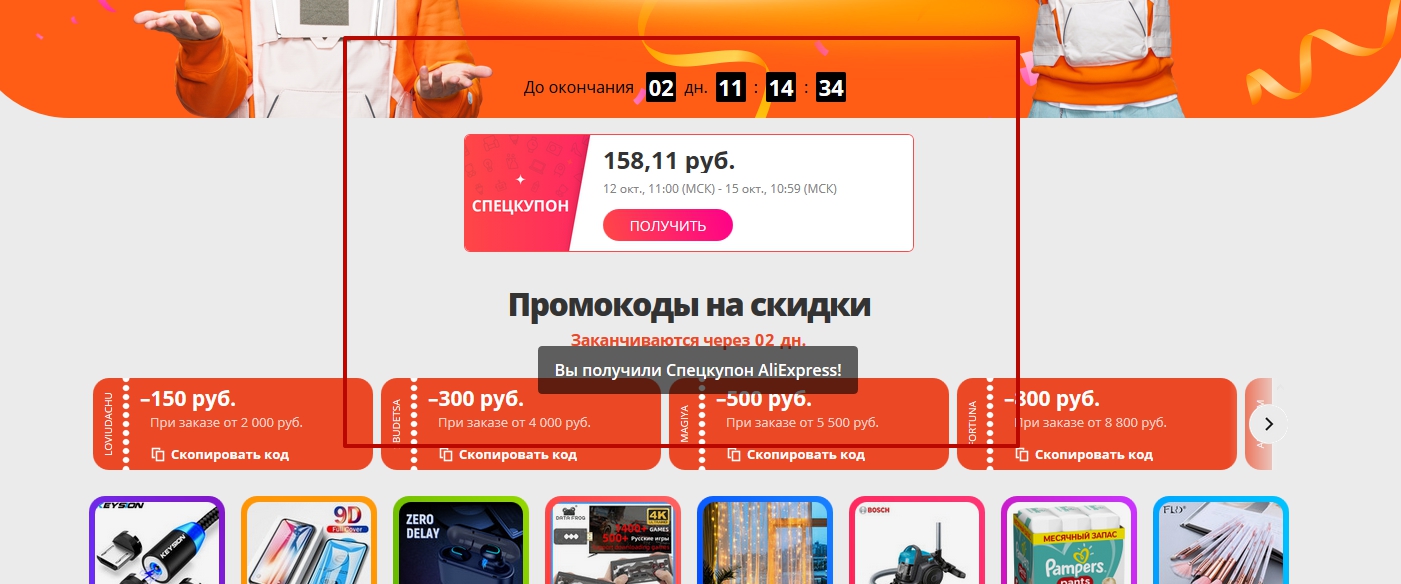 На ваши спецкупоны вы можете купить товары только в этой секции на AliExpress