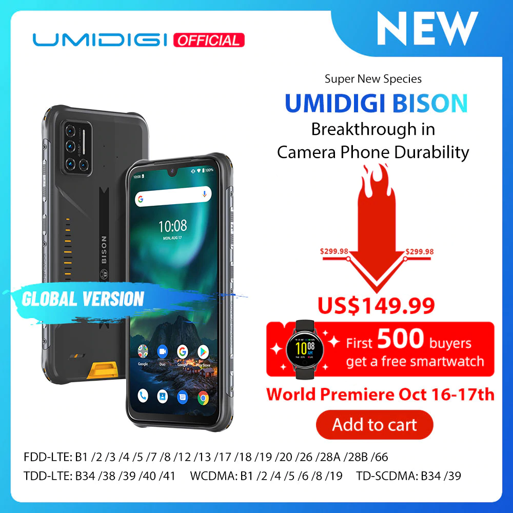 Китайская компания UMIDIGI официально представила свою новую модель смартфона UMIDIGI BISON, выполненном в защищенном от внешних воздействий дизайне и оснащенным 48 МП квадрокамерой, а также аккумулятором ёмкостью 5000 мАч.