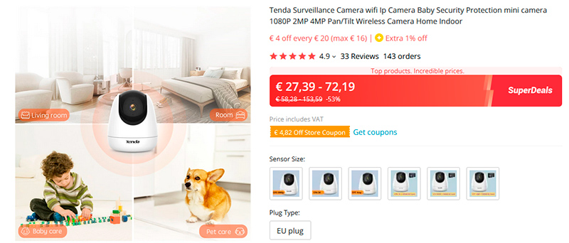 Недорогая беспроводная камера видеонаблюдения с разрешением FullHD/2K/2,5K от очень известного производителя. Для наблюдения за домом, детьми, домашними животными. Ее можно разместить на горизонтальной поверхности или установить под потолком при помощи входящего в комплект крепления. Обзор 360 градусов (камера умеет поворачиваться), есть микрофон для двусторонней аудиосвязи. Умеет предупреждать через приложение об обнаружении движения.