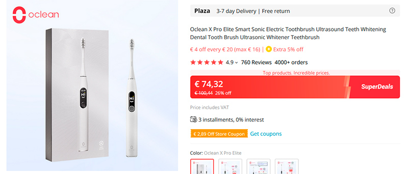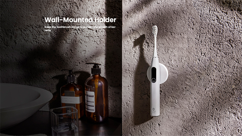 Новая версия очень продвинутой электрической зубной щетки Oclean X Pro Elite. Имеет цветной сенсорный дисплей, на котором выводятся данные о продолжительности очистки, об эффективности чистки определённых зон и так далее. Имеет влагозащиту. Поддерживает четыре режима работы с 32 уровнями интенсивности. Может управляться через приложение для iOS и Android, где кроме отслеживания информации можно создавать свои варианты настроек. Максимальное время автономной работы - до 40 дней. В комплект идет зарядное устройство "2 в 1", которое также выполняет функцию магнитного настенного держателя.