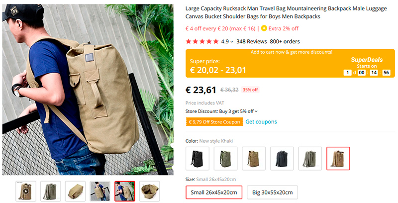 Недорогой и вместительный холщовый рюкзак в стиле "Бродяга Джонни". Два размера и аж шесть вариантов цветов.