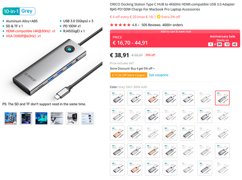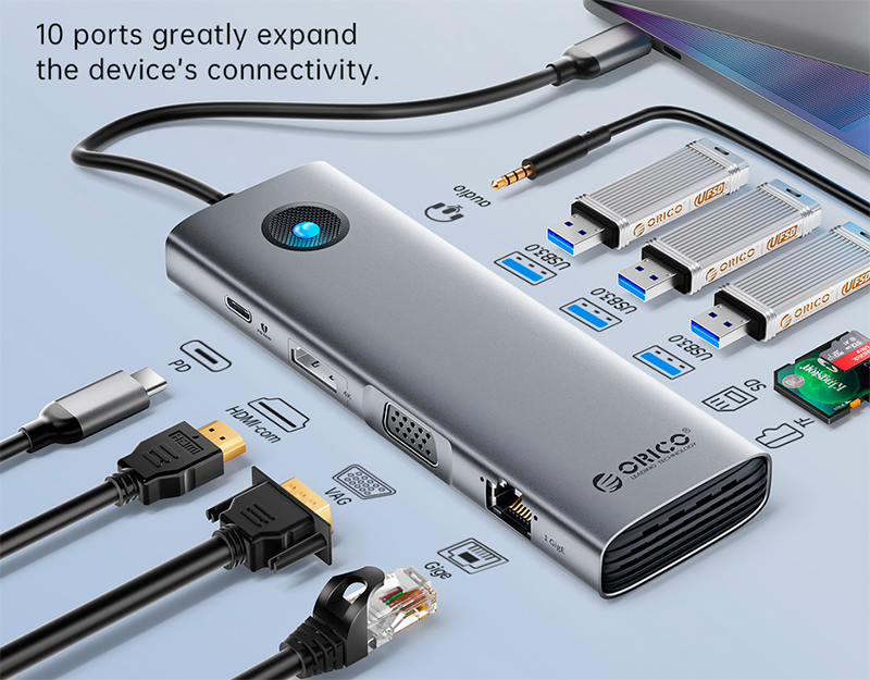 Большой выбор многофункциональных док-станций Orico для современных ноутбуков: от "5 в 1" до "10 в 1" - можно выбрать нужный вариант, чтобы не переплачивать за избыточную функциональность.