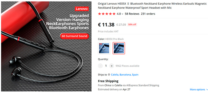 Дешевые уличные/спортивные беспроводные наушники Lenovo HE05X. Влагозащита, до 8 часов автономности, в случае выпадения из уха не потеряются, управляются кнопками, поддерживают кодек AAC, два цвета.