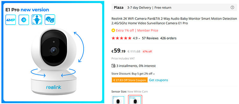 Продвинутая двухдиапазонная беспроводная камера видеонаблюдения Reolink E1 Pro с большим набором функций и разрешением 2К (2560х1440): двухсторонняя голосовая связь (может работать в качестве монитора для ребенка), обзор 355 градусов, ночной режим, обнаружение движения (отправка уведомления через приложение).