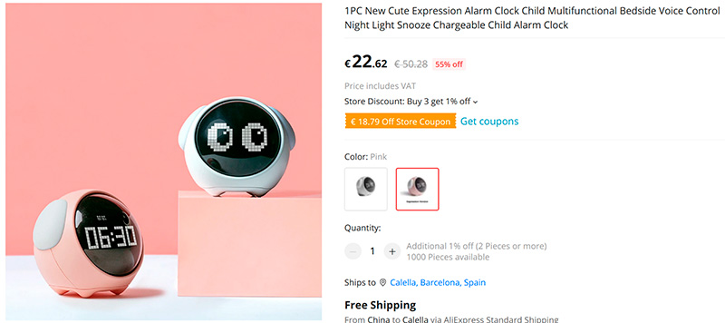 Симпатичные часы-будильник с несколькими функциями: показывает время, умеет моргать пиксельными глазками, выводит на экран надписи, при касании включает ночник, есть функция отложенного будильника - когда сигнал срабатывает, часы можно потрясти, и после этого будильник снова сработает только через пять минут.