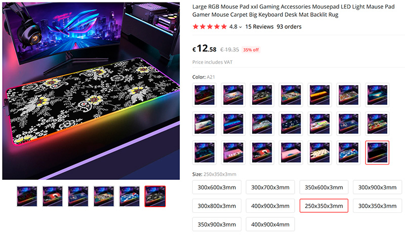 Эффектные коврики для мыши с RGB-подсветкой. Более 20 рисунков, 10 вариантов размеров.