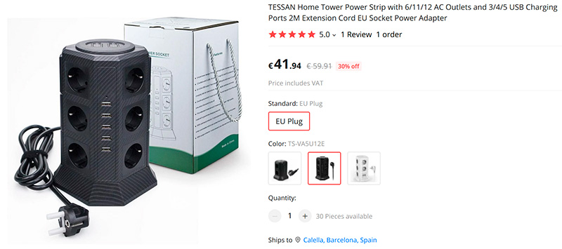 Три разновидности вертикальных удлинителей TESSAN с двухметровым кабелем и кнопками включения/выключения разных блоков с европейскими розетками и USB-портами.