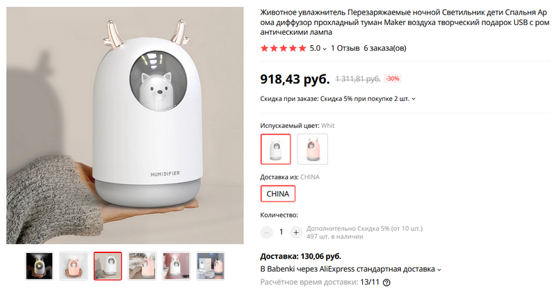 Увлажнитель воздуха для детской. Очень забавный - там внутри как будто сидит собачка в иллюминаторе: Белка или Стрелка. Одновременно это еще и ночник для детской.