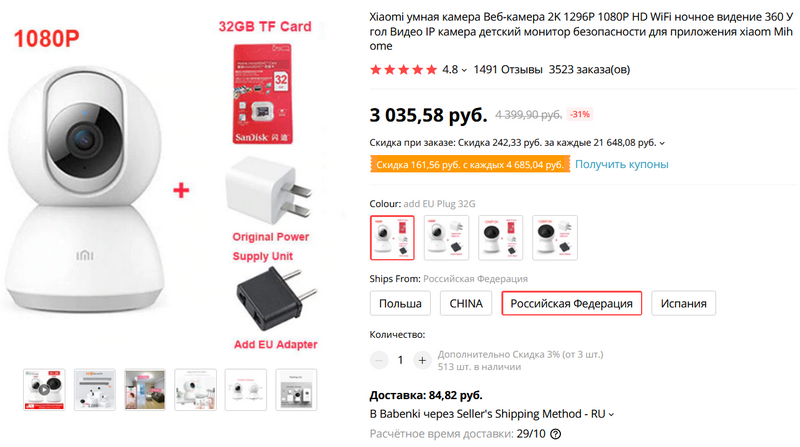 Умная веб-камера от Xiaomi. Разрешение FullHD или 2K (1296P), ночное видение, вращение по горизонтали (360 градусов) и по вертикали (115 градусов), совместимость с приложением Mi Home, есть доставка с российского склада. Может работать как видеоняня для ребенка. Заказываю потестировать, у меня немало устройств умного дома от Xiaomi - посмотрим, как эта камера работает.