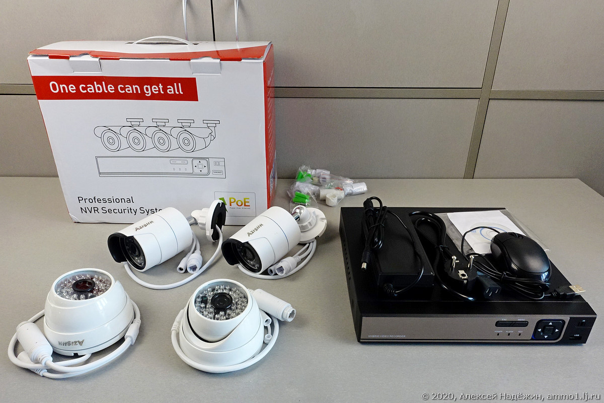 Почитайте у Надежина. Он покупал на алишке камеры и делал систему видеонаблюдения.Обзор: Комплект POE видеонаблюдения с четырьмя камерамиPOE-комплект видеонаблюдения предназначается тем, кто не хочет разбираться с выбором отдельных компонентов системы и хочет установить видеонаблюдение максимально просто. Достаточно протянуть по одному кабелю к каждой камере, включить и настроить систему.Тыц