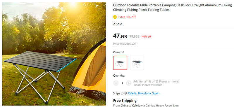 Ну и если нужен аналогичный раскладной столик, то у данного производителя он тоже есть. Алюминий и пластик, также в сложенном виде занимает немного места.
