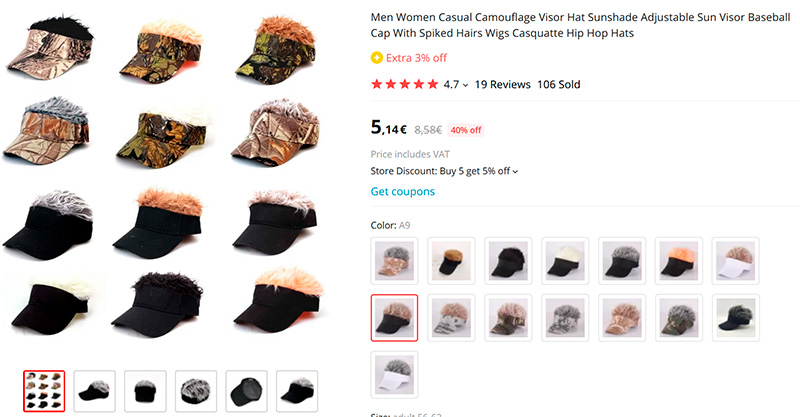 Какая забавная штука - бейсболка с искусственной "прической". Большой выбор как бейсболок различных разцветок, так и "причесок". Заказал себе парочку, люблю такие штуки.