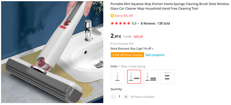 Попалась тут очень компактная ручная швабра со сменной губкой-щеткой, которую можно отжать, потянув за бегунок на ручке. Мыть стол, зеркала, окна, кухонные поверхности. Мне она нужна прежде всего для рабочего стола и зеркала в ванной - надоело с губками возиться, посмотрю, как эта справится. Можно заказать в комплекте с запасными губками, также можно отдельно заказать губки.