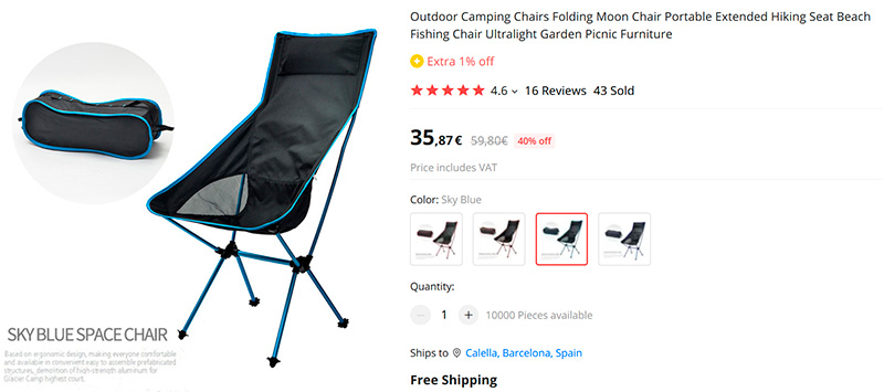 Складные стулья за те же деньги есть на Амазоне. Поражает, кончено, как растут китайские ценники. Неудивительно, что к ним кризис приближается (или уже пришел?), смысла покупать у них никакого нет. Кажется, примерно также было и с Японией в 70-80-х, когда их товары были на порядок дешевле американских, а потом стали дороже и экономика Японии остановилась.