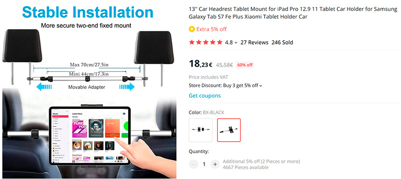 Интересный держатель для планшета, который крепится к подголовникам двух сидений, а планшет (до 13"), размещается между сидениями.