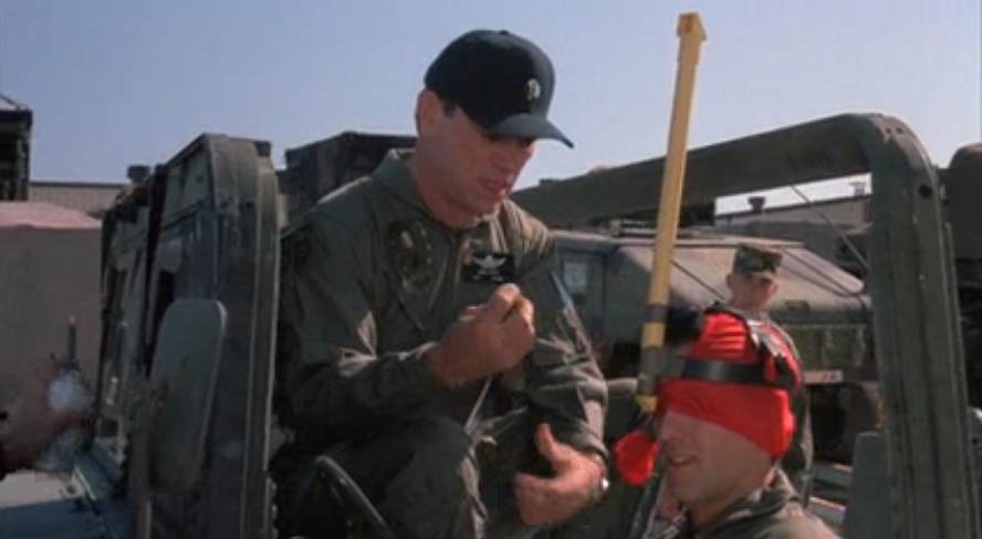 "Огненные птицы", 1990. Пилота вертолёта учат вертеть головой по оригинальной методике.