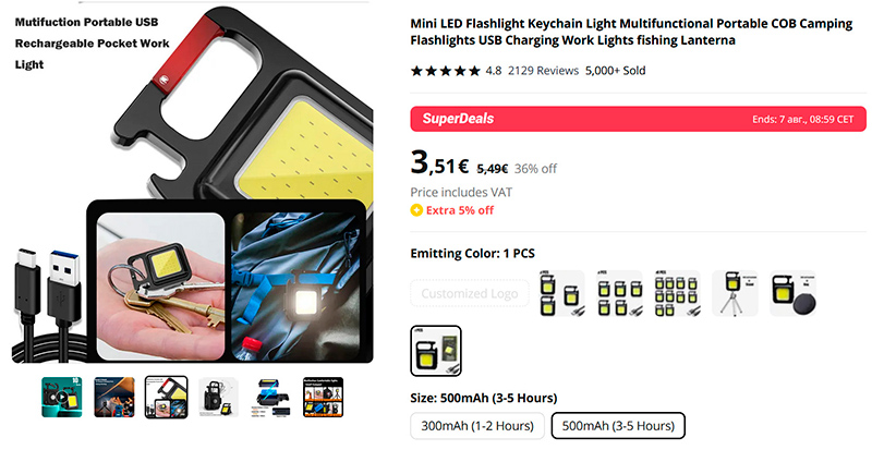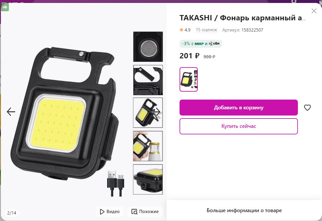 Яркий фонарик-брелок размером с монетку. Светит ярче, чем фонарик смартфона, имеет различные режимы свечения. Два варианта - один светит 1-2 часа, другой - 3-5 часов. Может много для чего пригодиться.