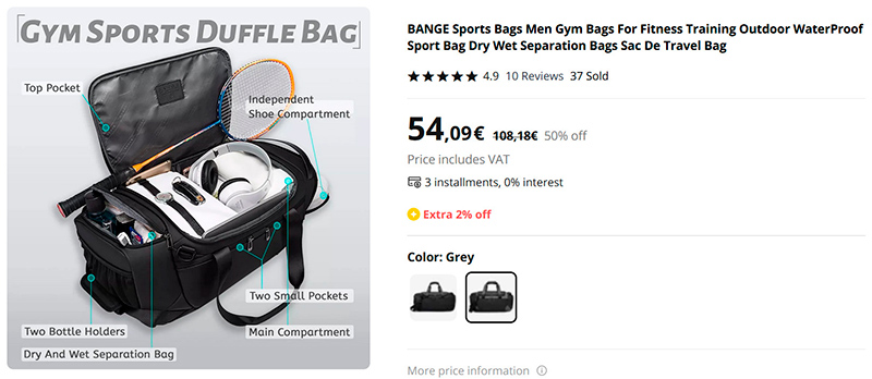 Спортивная сумка от известного производителя Bange. Выполнена из износоустойчивой непромокаемой ткани. Кроме большого основного отделения, есть два изолированных отсека: для обуви и для мокрых вещей. Два варианта расцветок.